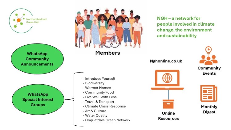 Northumberland Green Hub is a growing and enthusiastic community that’s all about making a difference. Our aim is to make it easy to share knowledge and resources, publicise events, find funding, work together and get mutual support.